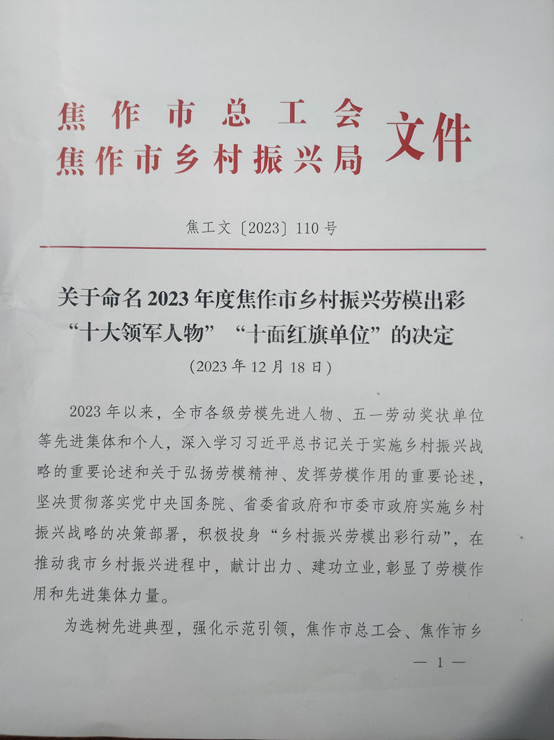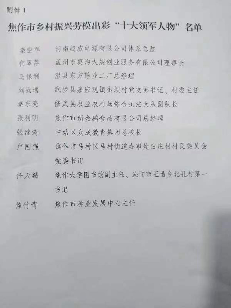 焦作市2023年十二月“十大領(lǐng)軍人物”名單
